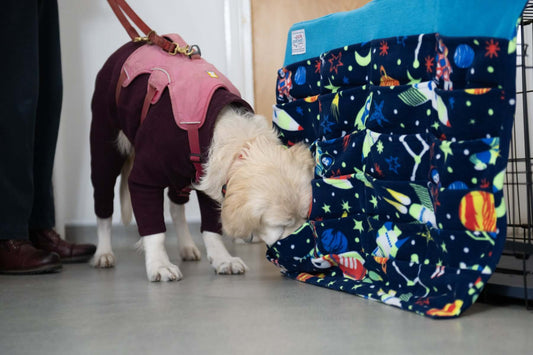 This range is designed to support your training needs and your puppy’s learning and development. Use the pouches as a perfect reward for recall when paired with a whistle, encourage your puppy to forage through the pockets of the hanging forager whilst you groom, clip nails and check ears, and use the buckwheat bean bag forager for times when you need a high success rate such as at the vets or to help your puppy settle in the car. The foraging bag is your ‘on the go’ forager to take to cafés or times when you need your dog to settle quietly.